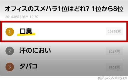 なんと体臭やタバコのニオイよりも口臭の方が不快に思う人が多いみたいで…