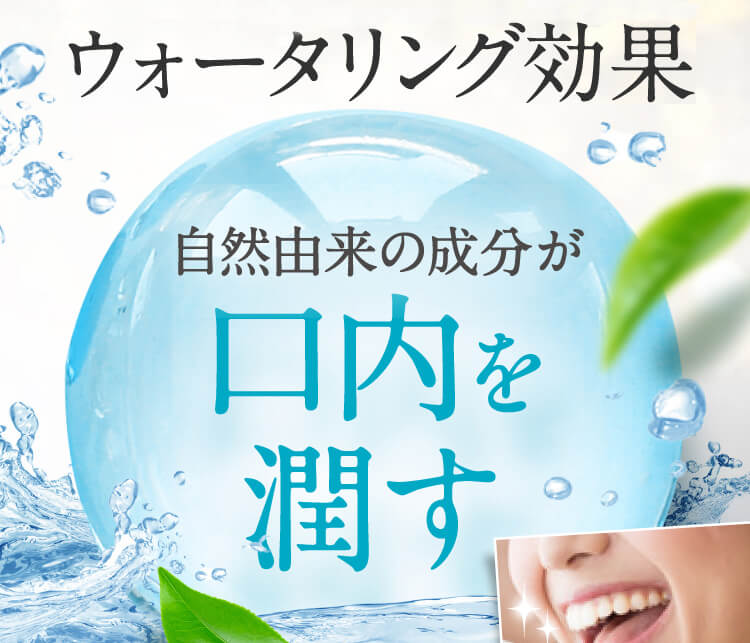 口が乾燥しないようにカテキンや甜茶などの自然由来の成分が口の中を潤してくれます。
